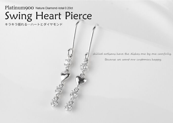 ピアス レディース プラチナ900 ハート 揺れる スウィング PT900 フックピアス 記念日 誕生日 ギフト プレゼント 自分ご褒美ジュエリー ホワイトデー