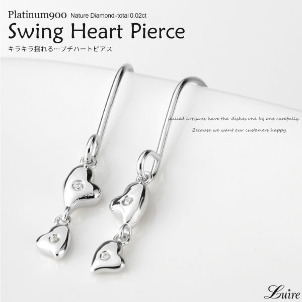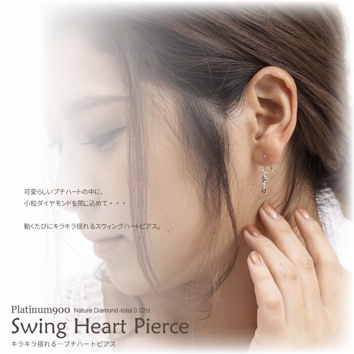 ピアス レディース プラチナ900 ハート 揺れる スウィング PT900 フックピアス 記念日 誕生日 ギフト プレゼント 自分ご褒美ジュエリー ホワイトデー
