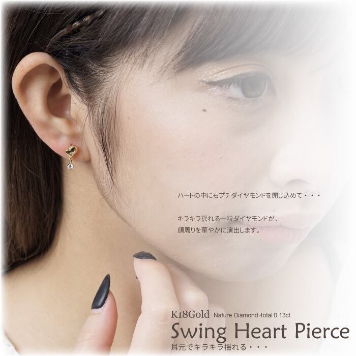 ピアス レディース K18 18金 ハート 揺れる スウィング ダイヤモンド 一粒石 K18ゴールド フックピアス 記念日 誕生日 ギフト プレゼント 自分ご褒美ジュエリー ホワイトデー