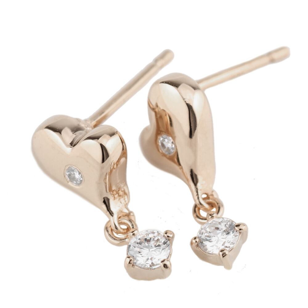 揺れるハート型のデザインに、一粒のダイヤモンドが美しく輝き、顔周りを華やかに演出してくれます。動くたびに光を反射し、シンプルながらも存在感のある仕上がりです。特別なお出かけやデートにぴったりのアイテムです!!