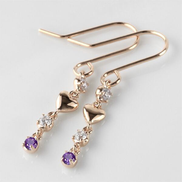 ピアス レディース K18 18金 アメジスト ハート 揺れる 誕生石 カラーストーン K18ゴールド フックピアス 記念日 誕生日 ギフト プレゼント 自分ご褒美ジュエリー ホワイトデー