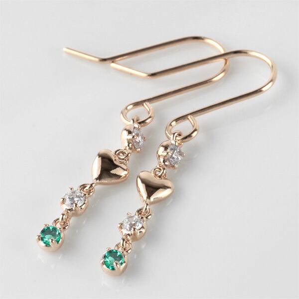 ピアス レディース K10 10金 エメラルド ハート 揺れる 誕生石 カラーストーン K10ゴールド フックピアス 記念日 誕生日 ギフト プレゼント 自分ご褒美ジュエリー ホワイトデー