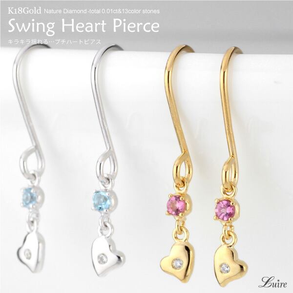 ピアス レディース シトリントパーズ K18 18金 ハート 揺れる 誕生石 カラーストーン K18ゴールド フックピアス 記念日 誕生日 ギフト プレゼント 自分ご褒美ジュエリー ホワイトデー