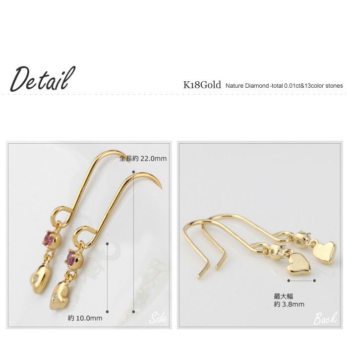 心をつかむ揺れるハートモチーフのK18ゴールドフックピアスです。