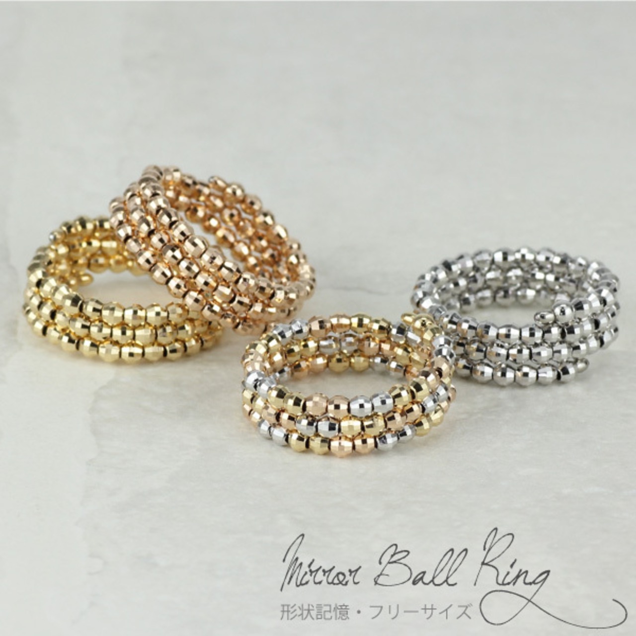 リング ミラーボール スパイラル 形状記憶 3連 フリーサイズ ゴールド 刻印入り ミラーボールカット k18 18金 ゴールド コンビゴールド 記念日 誕生日プレゼント ボーナスセール