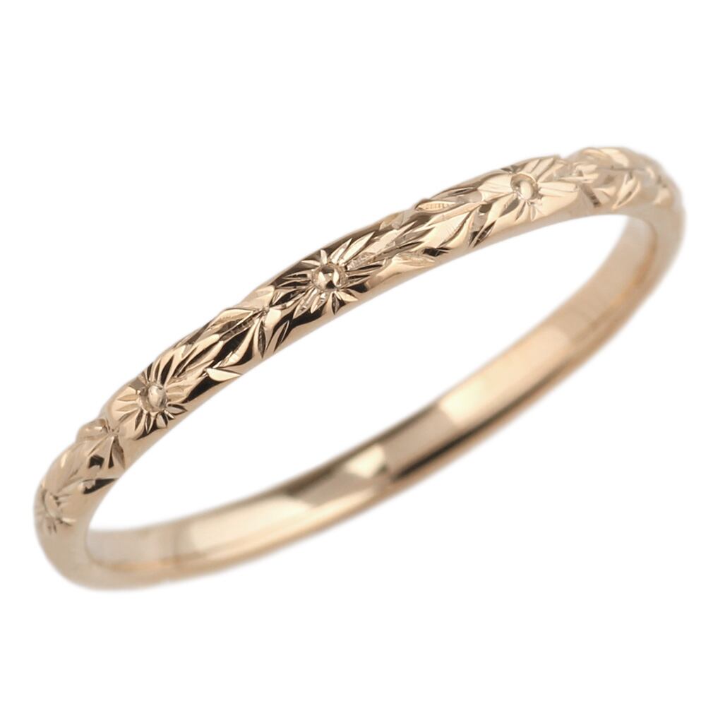 リング レディース ハワイアンジュエリー 18金スクロール プルメリア 波 花 華奢 女性 K18ゴールド 彫金 手彫り 結婚指輪 刻印 プレゼント ギフト 誕生日 記念日 ボーナスセール