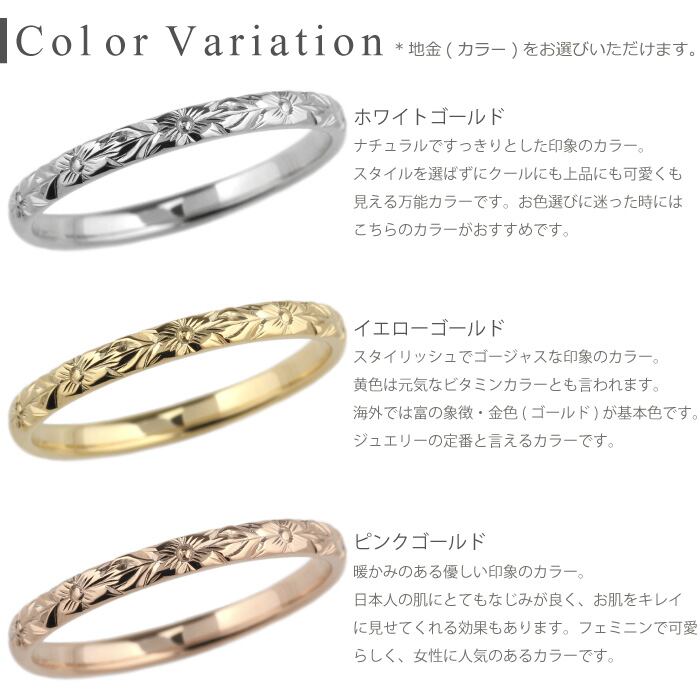 リング メンズ ハワイアンジュエリー 10金スクロール プルメリア 波 花 華奢 男性 K10ゴールド 彫金 手彫り 結婚指輪 刻印 プレゼント ギフト 誕生日 記念日 ボーナスセール