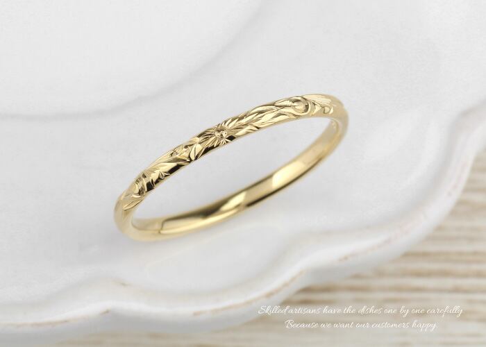 リング ハワイアンジュエリー レディース 18金 スクロール プルメリア 波 花 華奢 女性 K18ゴールド 彫金 手彫り 結婚指輪 刻印 プレゼント ギフト 誕生日 記念日 ボーナスセール
