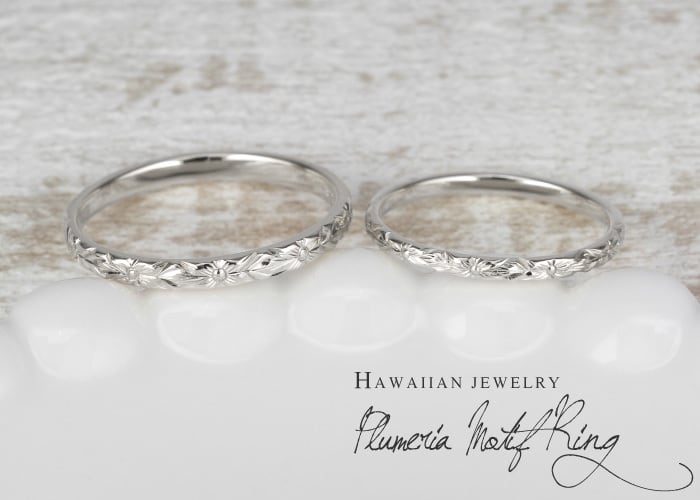 ハワイアン ジュエリー ペアリング 18金 プルメリア 花 華奢 レディース メンズ 指輪 刻印 男性 女性 k18ゴールド 彫金 手彫り 結婚指輪 プレゼント ギフト 誕生日 記念日 ボーナスセール