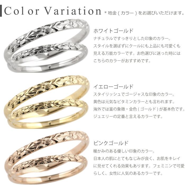 ハワイアン ジュエリー ペアリング 10金 プルメリア 花 華奢 レディース メンズ 指輪 刻印 男性 女性 k10ゴールド 彫金 手彫り 結婚指輪 プレゼント ギフト 誕生日 記念日 ボーナスセール