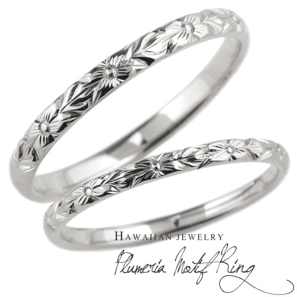 ハワイアン ジュエリー ペアリング シルバー925 プルメリア 花 華奢 レディース メンズ 指輪 刻印 男性 女性 SV925 彫金 手彫り 結婚指輪 プレゼント ギフト 誕生日 記念日 ボーナスセール