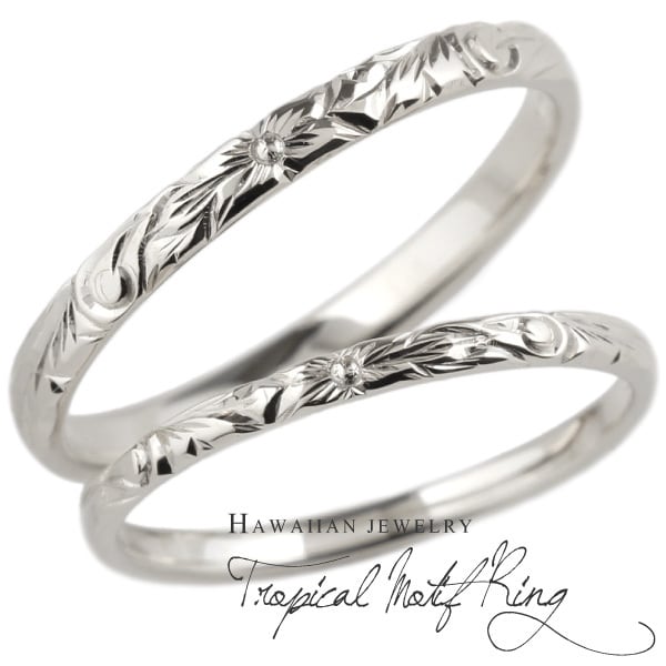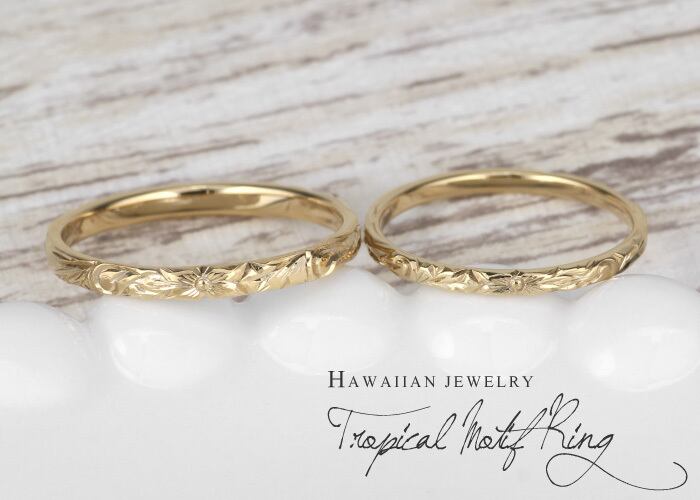 ハワイアン ジュエリー ペアリング 18金 スクロール プルメリア 波 花 華奢 レディース メンズ 指輪 刻印 男性 女性 地金 彫金 手彫り 結婚指輪 プレゼント ギフト 誕生日 記念日 ボーナスセール