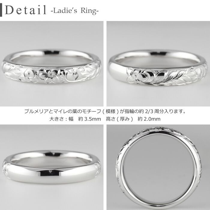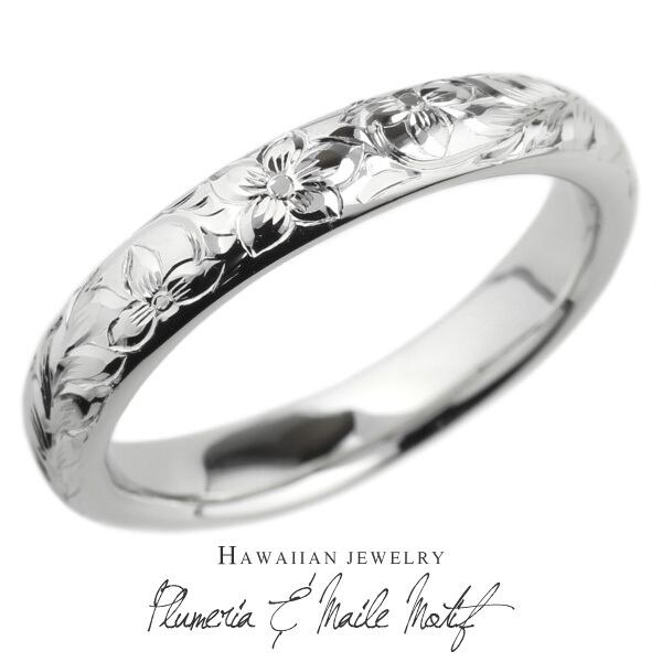 ハワイアン ジュエリー レディース リング 18金 プルメリア マイレ 花 葉 ハワイアン 女性 K18ゴールド 地金リング 彫金 手彫り 手彫り彫刻 結婚指輪 刻印 ハンドメイド ボーナスセール