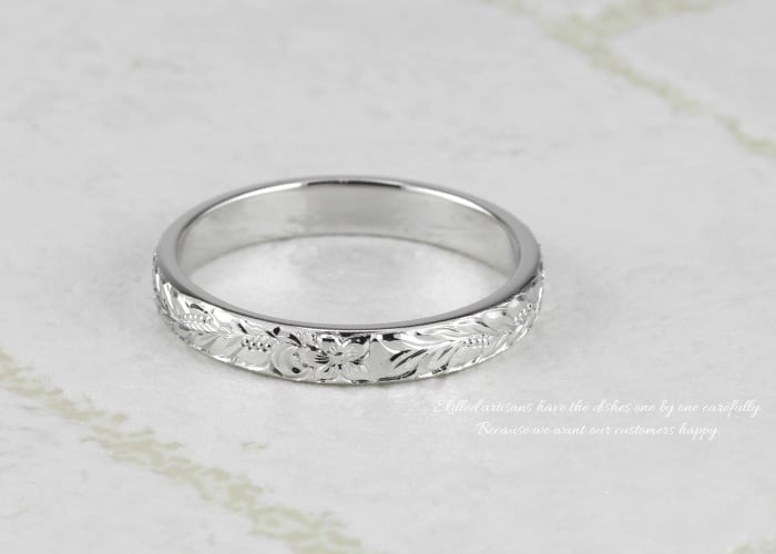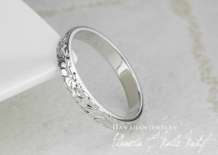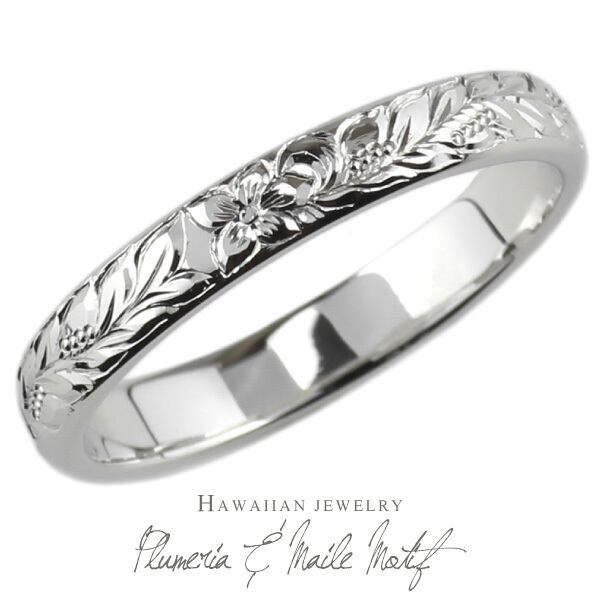 リング ハワイアン ジュエリー レディース プラチナ900 プルメリア マイレ 花 葉 女性 pt900 地金リング 彫金 手彫り 手彫り彫刻 結婚指輪 刻印 人気 プレゼント ハンドメイド ボーナスセール