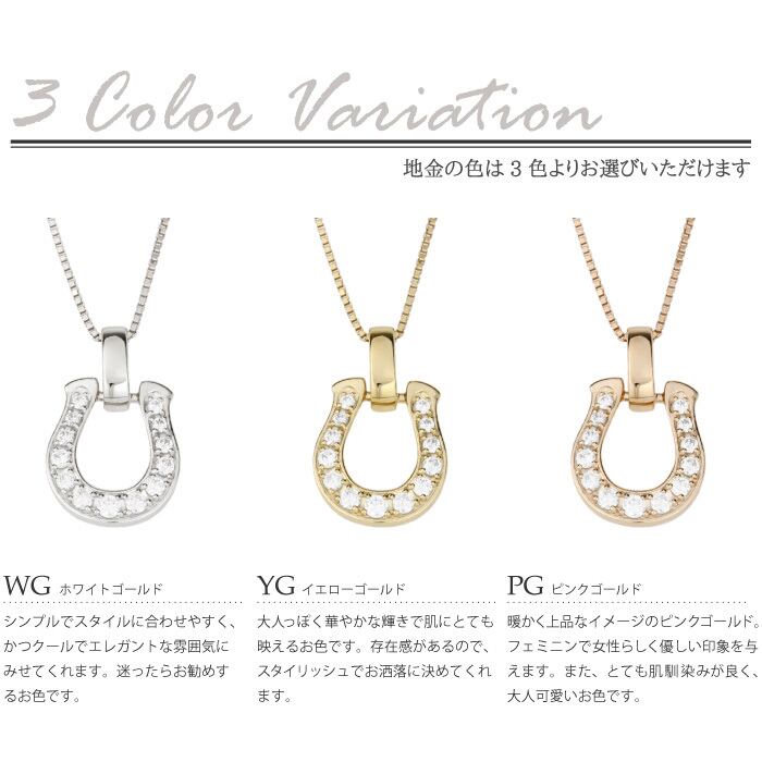 大切な方への贈り物や、自分自身へのご褒美としてもおすすめです。特別な日をさらに輝かせる、馬蹄モチーフのペンダントネックレスをぜひお楽しみください!