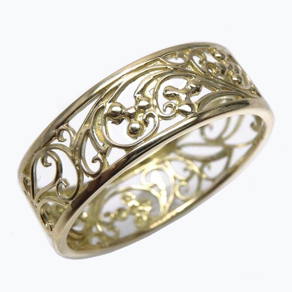 リング レディース 18金 k18 イエローゴールド 透かし模様 アンティーク調 地金リング ギフト 誕生日 マリッジリング
