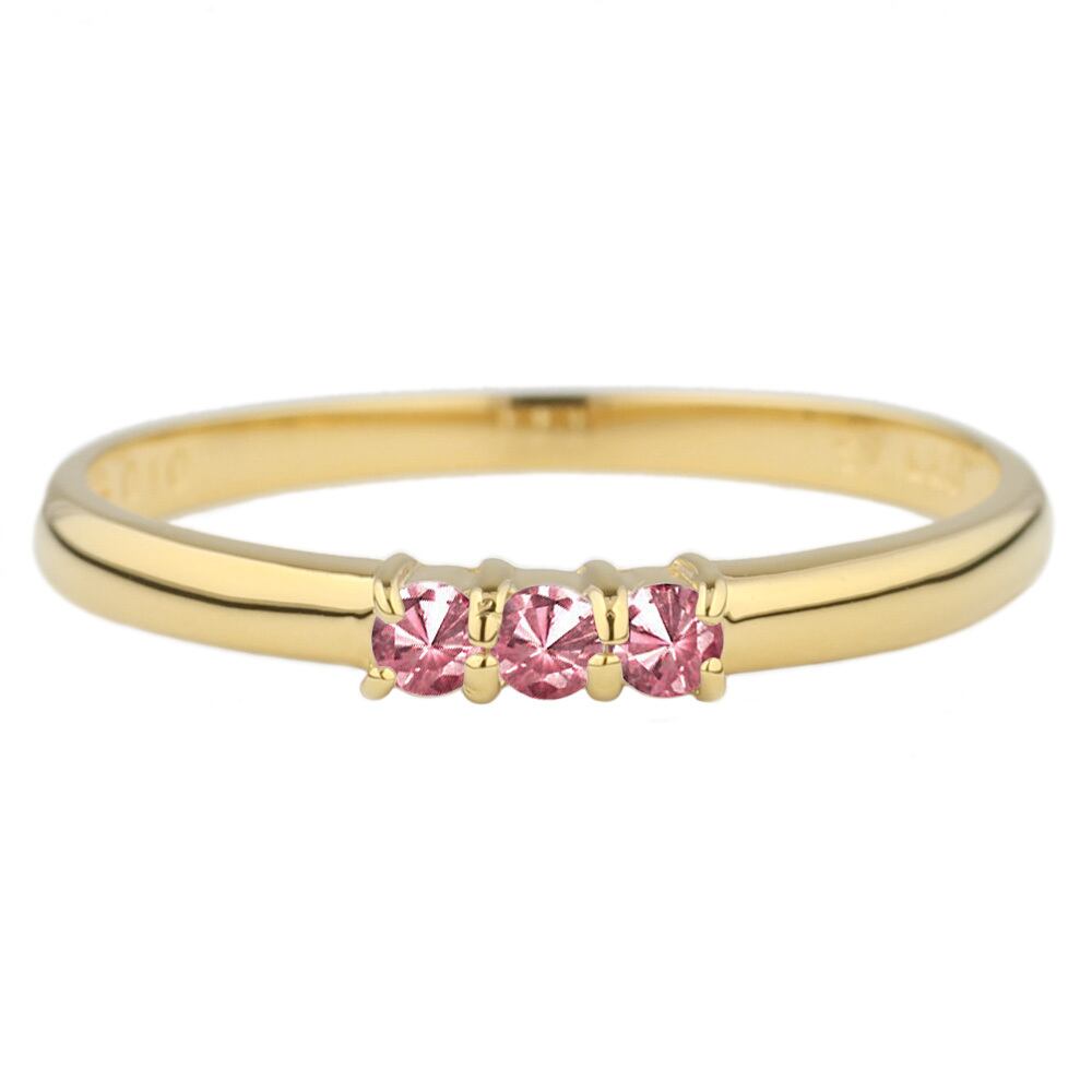 リング レディース スリーストーン 18金 トリロジー 誕生石 ピンクトルマリン K18イエローゴールド ピンキーリング ファランジリング ミディリング 記念日 誕生日