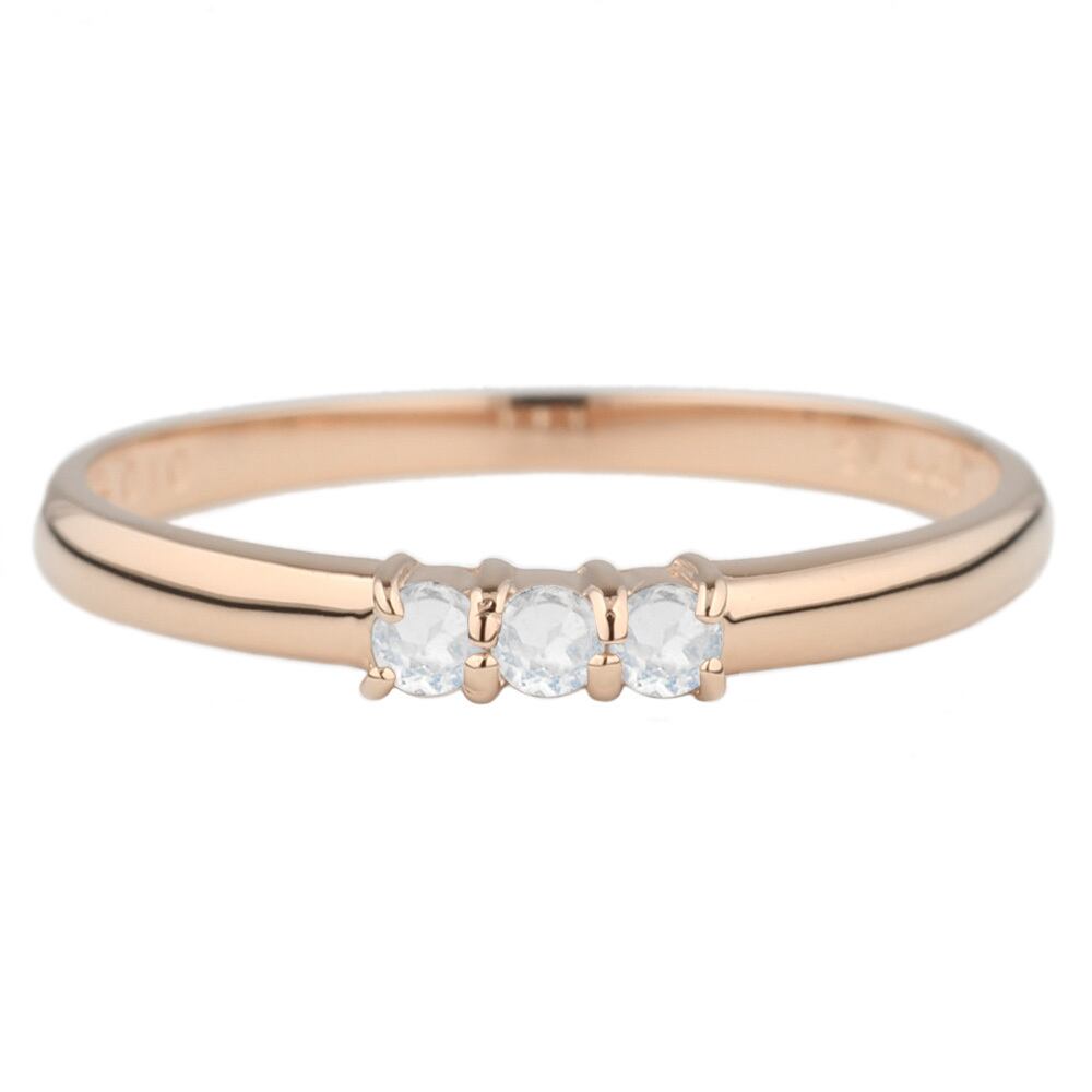 リング レディース スリーストーン 18金 トリロジー 誕生石 ムーンストーン K18ピンクゴールド ピンキーリング ファランジリング ミディリング 記念日 誕生日