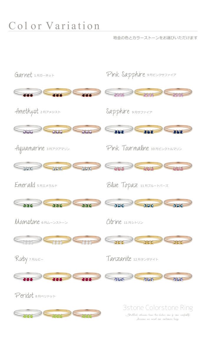リング レディース スリーストーン 18金 トリロジー 誕生石 サファイア K18ピンクゴールド ピンキーリング ファランジリング ミディリング 記念日 誕生日