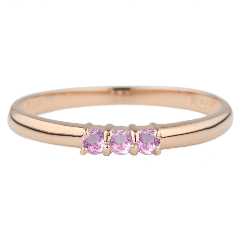 リング レディース スリーストーン 18金 トリロジー 誕生石 ピンクトルマリン K18ピンクゴールド ピンキーリング ファランジリング ミディリング 記念日 誕生日