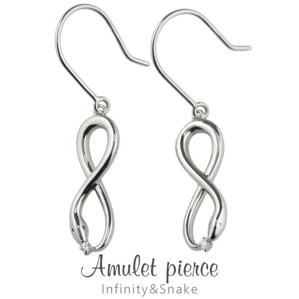永遠の象徴・インフィニティ(無限∞)と、幸運をもたらすと言われるへびモチーフを掛け合わせたラッキーアイテムのアミュレットピアスです。
