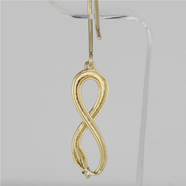 永遠の象徴・インフィニティ(無限∞)と、幸運をもたらすと言われるへびモチーフを掛け合わせたラッキーアイテムのアミュレットピアスです。