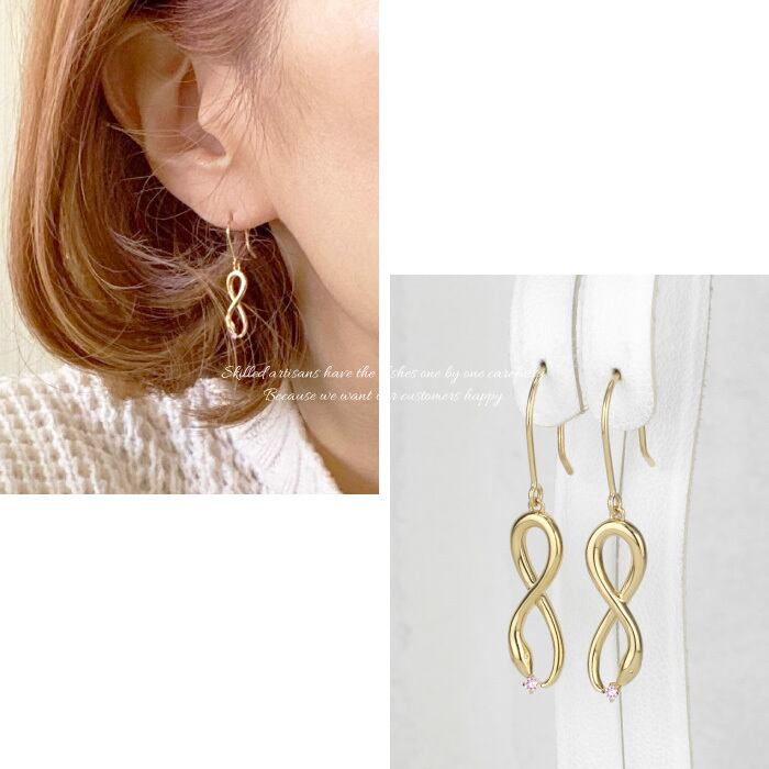 【k10ゴールド インフィニティ×ヘビモチーフ 誕生石フックピアス】