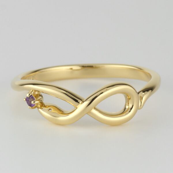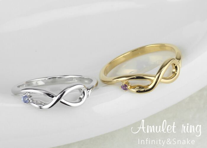 永遠の象徴・インフィニティ(無限∞)と、幸運をもたらすと言われるへびモチーフを掛け合わせたラッキーアイテムのアミュレットリングです。