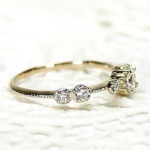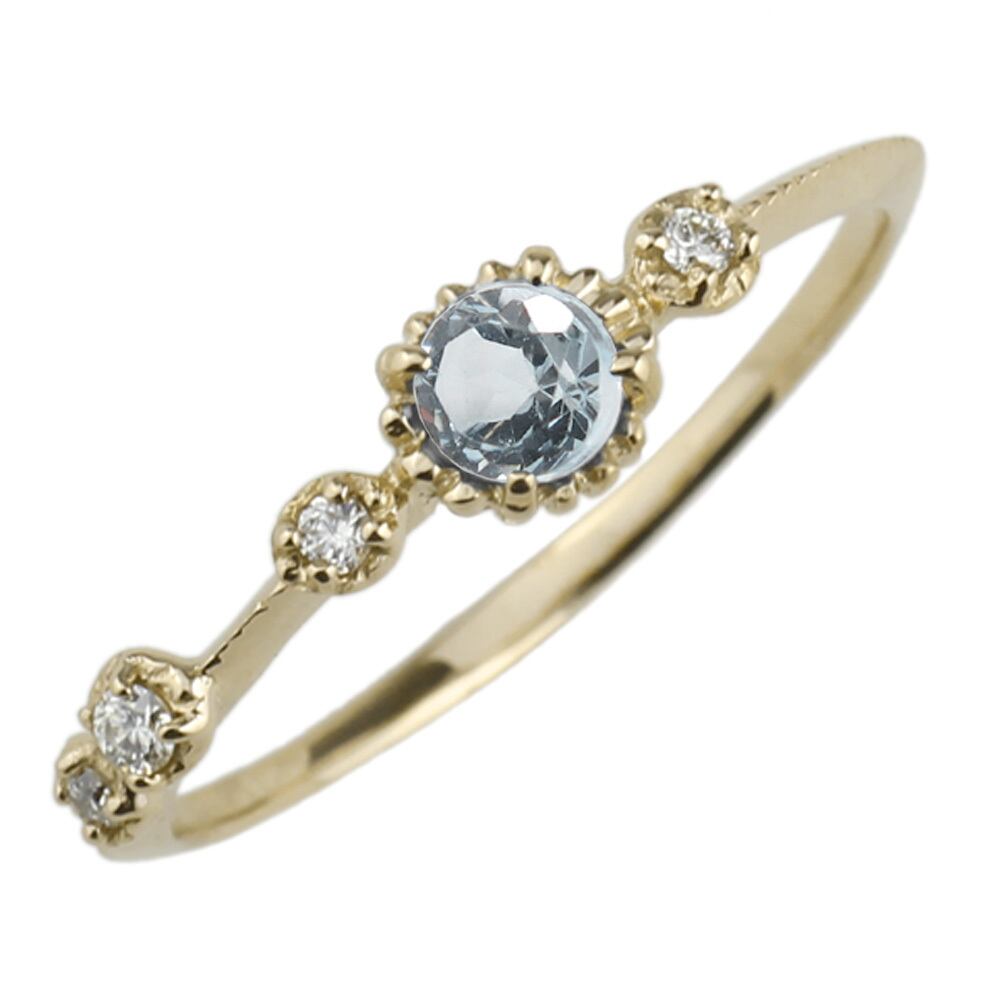 リング レディース 18金 誕生石 アクアマリン ピンキーリング アンティーク風 ダイヤモンドリング 小指 誕生日 指輪