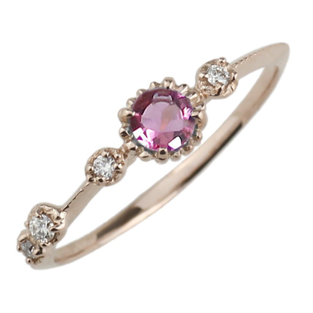 リング レディース 10金 誕生石 ピンクトルマリン ピンキーリング アンティーク風 ダイヤモンドリング 小指 誕生日 指輪