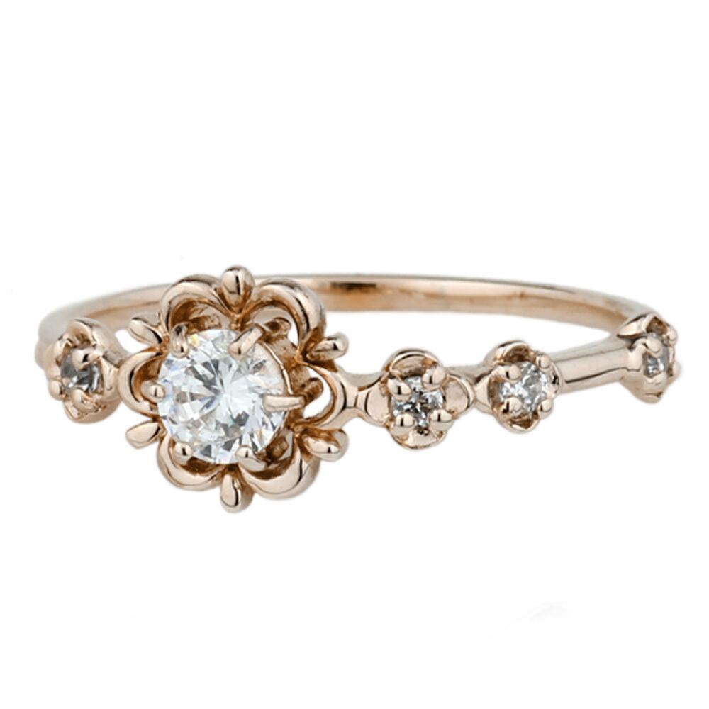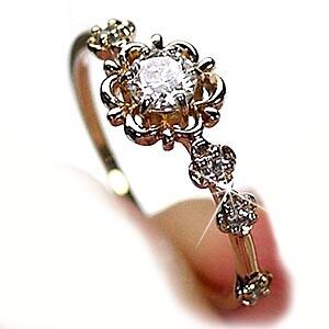 リング レディース 10金 誕生石 ダイヤモンド ピンキーリング アンティーク風 ダイヤモンドリング 小指 誕生日 指輪