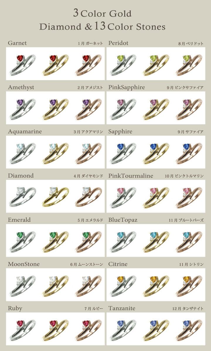 13色のカラーストーンとダイヤモンドで、誕生月に合わせてご用意しました。