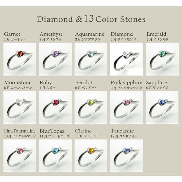 13色のカラーストーンとダイヤモンドで、誕生月に合わせてご用意しました。