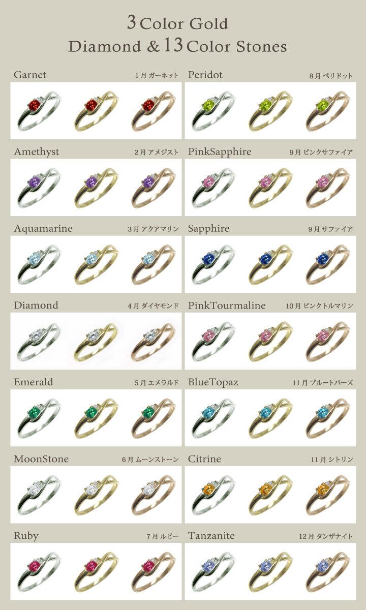 13色のカラーストーンとダイヤモンドで、誕生月に合わせてご用意しました。