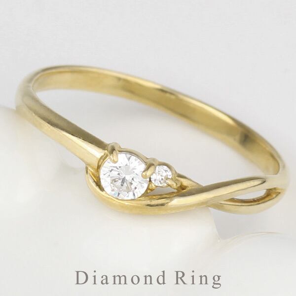 リング レディース k10 10金 誕生石 ダイヤモンド リボン リング 華奢 指輪 刻印 ミディリング ファランジリング 誕生日 プレゼント バレンタイン