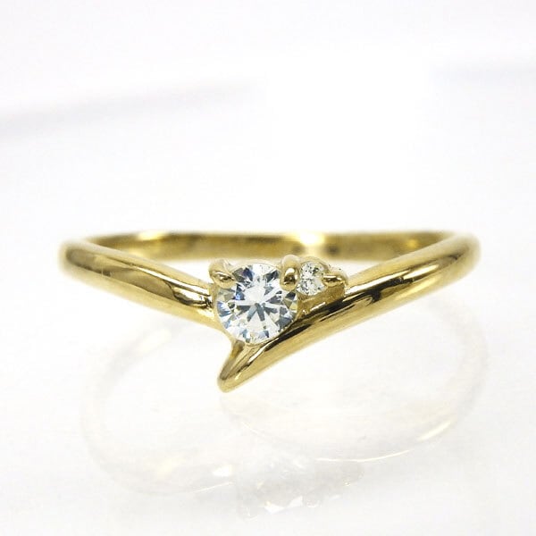 華奢で可憐な、可愛い一粒石 V字ラインリング。