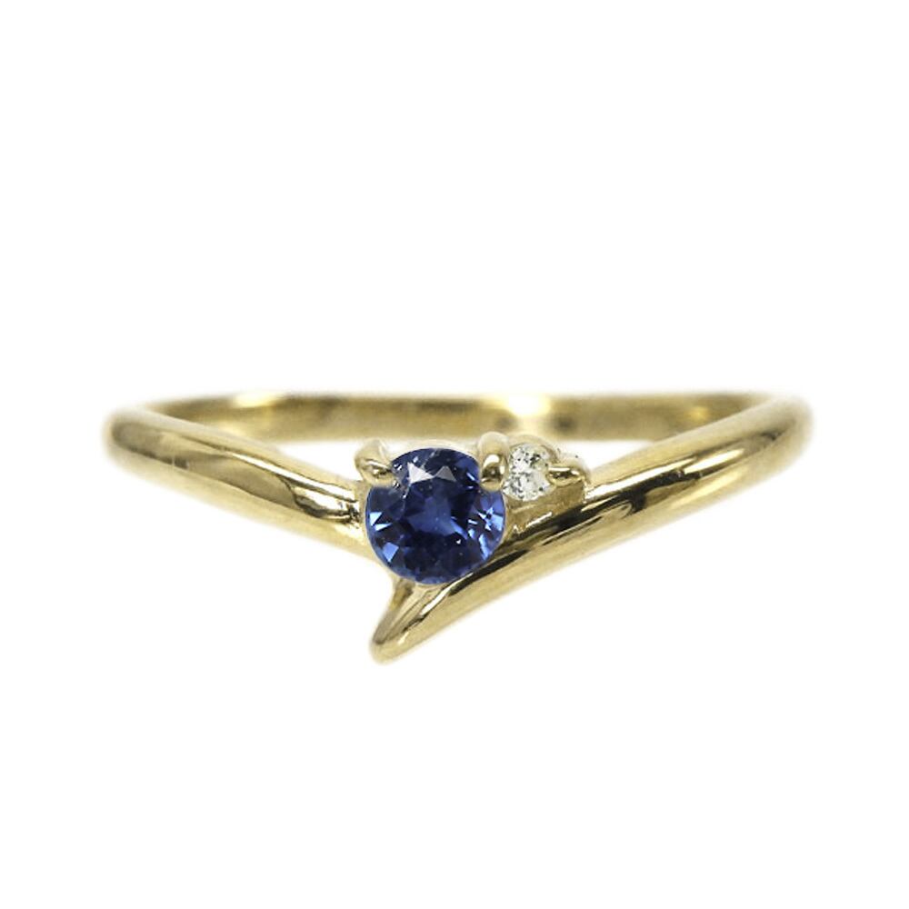 リング サファイア レディース k18WG/YG/PG V字ライン リング 一粒石 カラーストーン ミディリング ファランジリング 誕生日 プレゼント バレンタイン