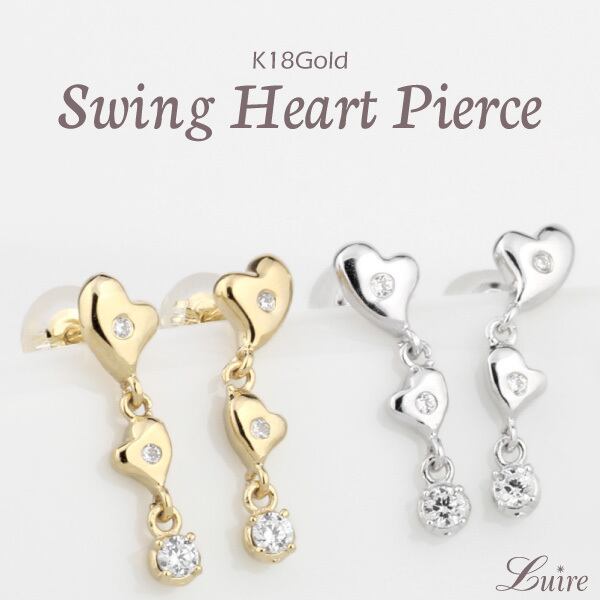 ピアス レディース 18金 K18 誕生石 ハート 揺れる ダイヤモンド ギフト バレンタイン