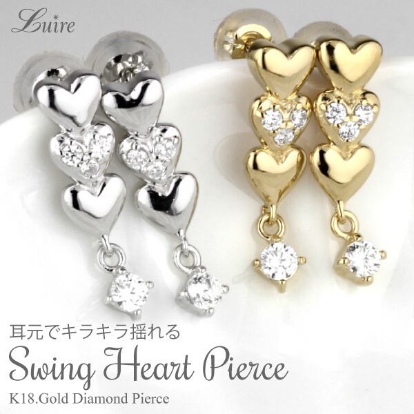 ピアス レディース 18金 K18 誕生石 ハート 揺れる ダイヤモンド スタッドピアス ギフト バレンタイン
